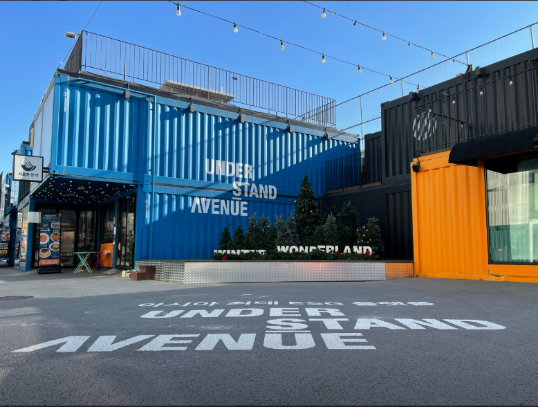 언더스탠드 에비뉴는 116개의 컨테이너를 활용하여 2-3층 높이로 쌓아 만든 독특한 구조를 자랑합니다. 이러한 건축 방식은 단순히 비용 절감을 위한 것이 아니라, 공간의 유연성과 확장성을 고려한 혁신적인 접근 방식입니다. 컨테이너의 모듈식 구조는 필요에 따라 공간을 쉽게 재구성할 수 있게 해주며, 동시에 현대적이고 세련된 분위기를 연출합니다.
